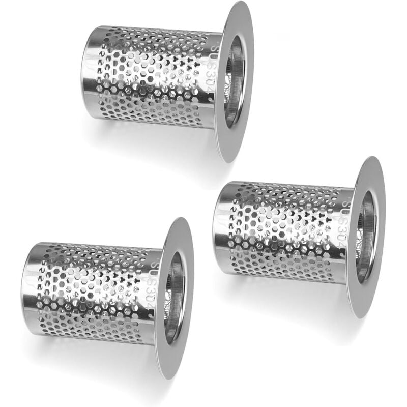Lot de 3 filtres de vidange en acier inoxydable pour cheveux, filtre de douche, filtre de vidange d'évier, filtre d'évier de 7