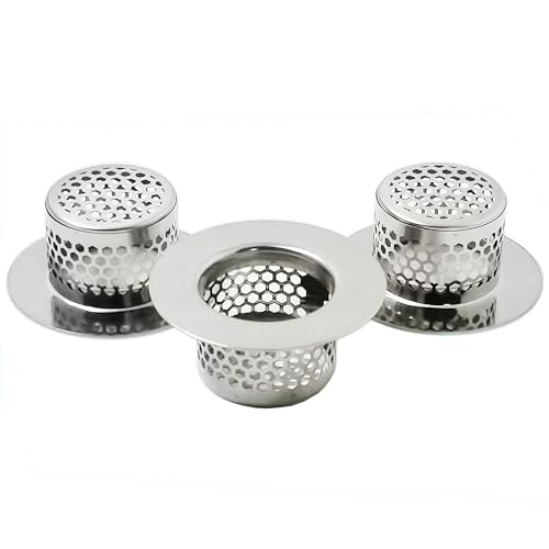 Lot de 3 Tamis Filtre Evier Cuisine - Attrape Filtre Cheveux Douche Filtre d'évier de Baignoire - Acier Inoxydable - Diamètre extérieur : 11,5 cm - Diamètre intérieur : 7 cm - Profondeur :2,2 cm