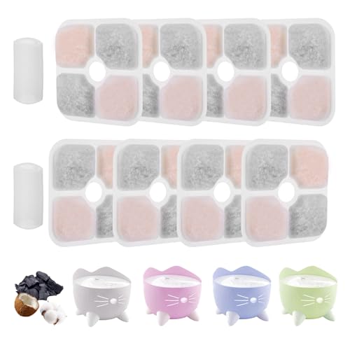 Lot de 8 filtres pour fontaine à eau Catit avec 2 tuyaux, triple système de filtration, filtre de rechange avec résine et charbon actif, taille M