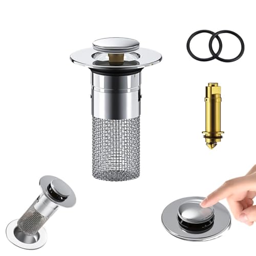 TKTTBD Stehaufe Bouchon de vidange Universel pour lavabo, Filtre de vidange rétractable, Bouchon de vidange, Bouchon de lavabo, Bouchon de lavabo Ø 34-40 mm, argenté