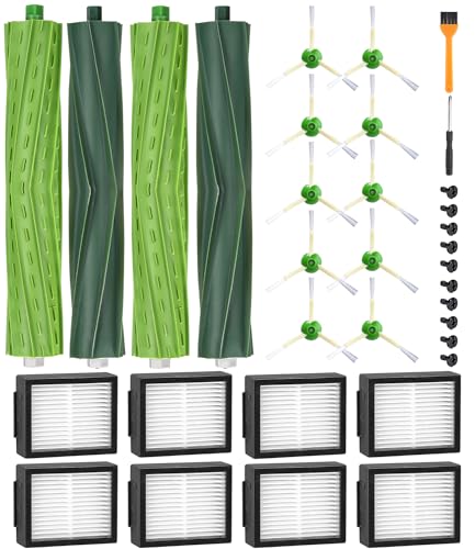 Pièces de rechange compatibles avec iRobot Roomba série E&i&j i7 j7 i3 i4 i7+ Plus i3+ i4 i4+ i6 i6+ i8 i8+ E5 E6 j7+ Plus, brosse en caoutchouc multi-surfaces, filtre haute efficacité, brosse de balayage des bords