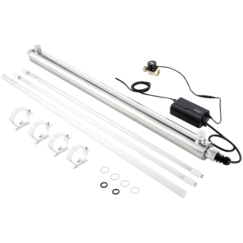 Filtre à eau UV - Stérilisateur d'eau domestique - Puissance 56 W - Débit 45,4 L/min - Boîtier en acier inoxydable - Manchon en verre de quartz - Pour la douche, la consommation, le nettoyage