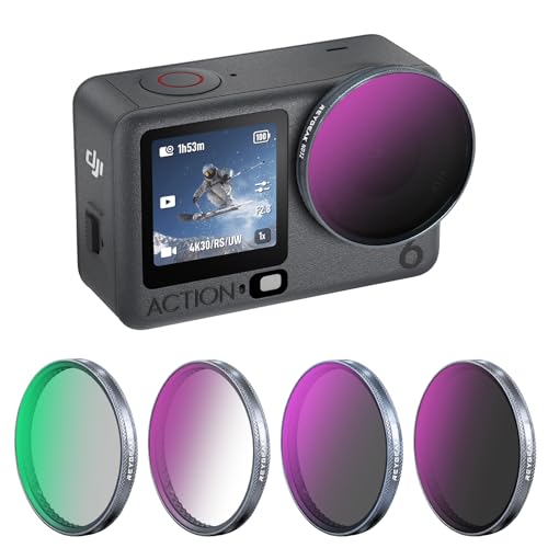 REYGEAK filtres ND pour DJI Osmo Action 6, 4 Pièces CPL ND8 ND16 ND32, Verre Optique HD Multi-Revêtu, Filtres de Lentille Polarisant à Densité Neutre pour Accessoires DJI Osmo Action