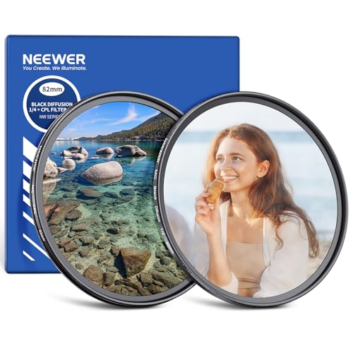 NEEWER Lot de 2 filtres CPL 82 mm + Diffusion de Brume Noire 1/4 Filtre polarisant Circulaire en Verre Optique Multicouche et Effet cinématographique Doux pour Objectif d'appareil Photo