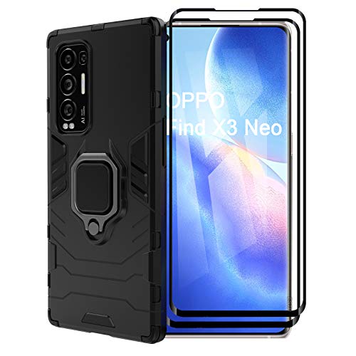 ESTH® Coque pour Oppo Find X3 Neo avec 2 Pièces Protection Écran, 360° Support Rotatif [Fonctionne avec Support De Voiture Magnétique] Étui Housse, Noir