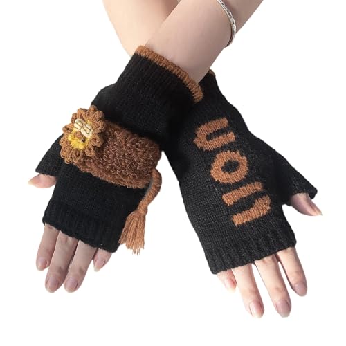 Gants sans doigts pour femmes - Broderie chat Patchworks Gants tricotés chauds Chauffe-pouls Gants tricotés pour filles Femmes Gants d'hiver à la mode Accessoire élégant Extérieur