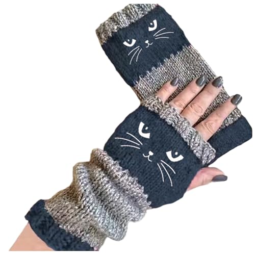 Mitaines sans doigts - Gants chauds avec doigts ouverts, broderie de chat, gant tricoté chaud pour l'extérieur, pour les amoureux des chats, femmes, filles, femmes, mères