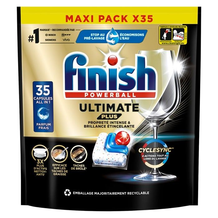 Finish Ultimate Plus Pastilles Lave-Vaisselle All in One- Parfum Frais - 35 Tablettes Lave-Vaisselle