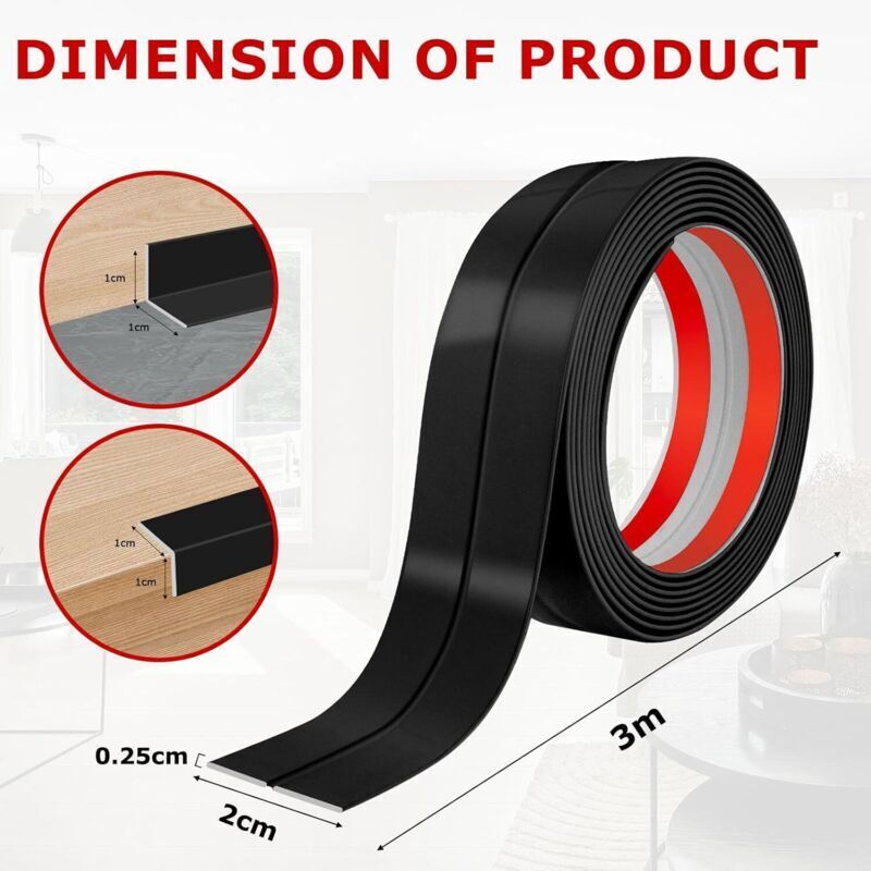 Moulure murale adhesive plinthe souple moulure decorative corniere PVC baguette de finition protection angle mural (2cm×3m, Noir)