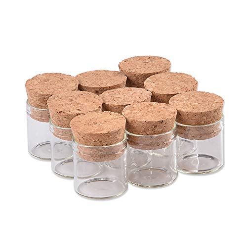12pcs Fiole En Verre De Bocaux en Verre Transparente Avec Bouchon En liège, capacité De Stockage De 10 ml, c'est Juste Une De 9 Modèle Différents (12, 10ml)