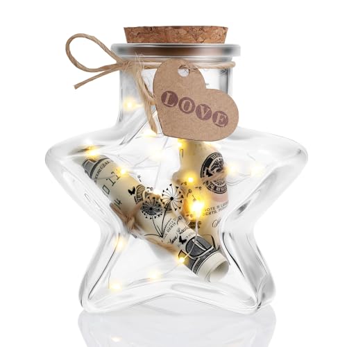 Fiole Potion Magique pour Cadeau d'anniversaire, Verre en Forme d'étoile avec Bouchon Liege, Fiole en Verre avec Corde&Lumineuse LED, Flacon Verres pour Décoration de Bricolage, Cadeaux de Mariage