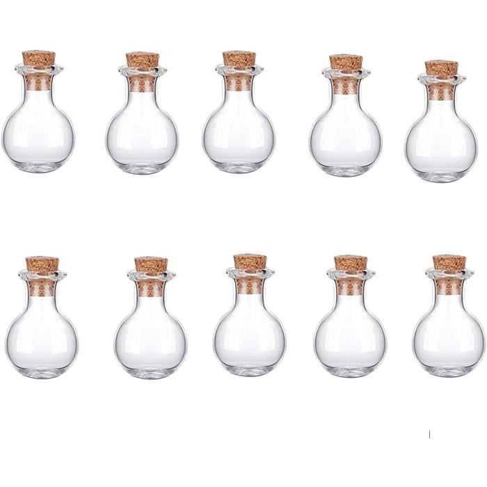 Yalulu Lot de 20 6-20ml Petites Bouteilles en verre transparent avec bouchon en liège jolie fiole flacon avec cork Mini bouteille décoratives pour parfums liquides sables colorés des gourmandises miniatures (10ml)