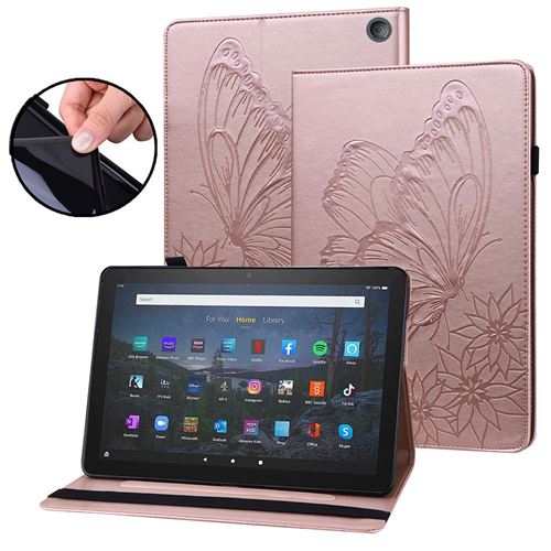 Étui FOXDOCK pour tablette Amazon Fire HD 10 (2021) Butterfly Design Premium Cuir Anti-Fall Protection Tablet Cover avec emplacements de carte et fonction du support-Rose