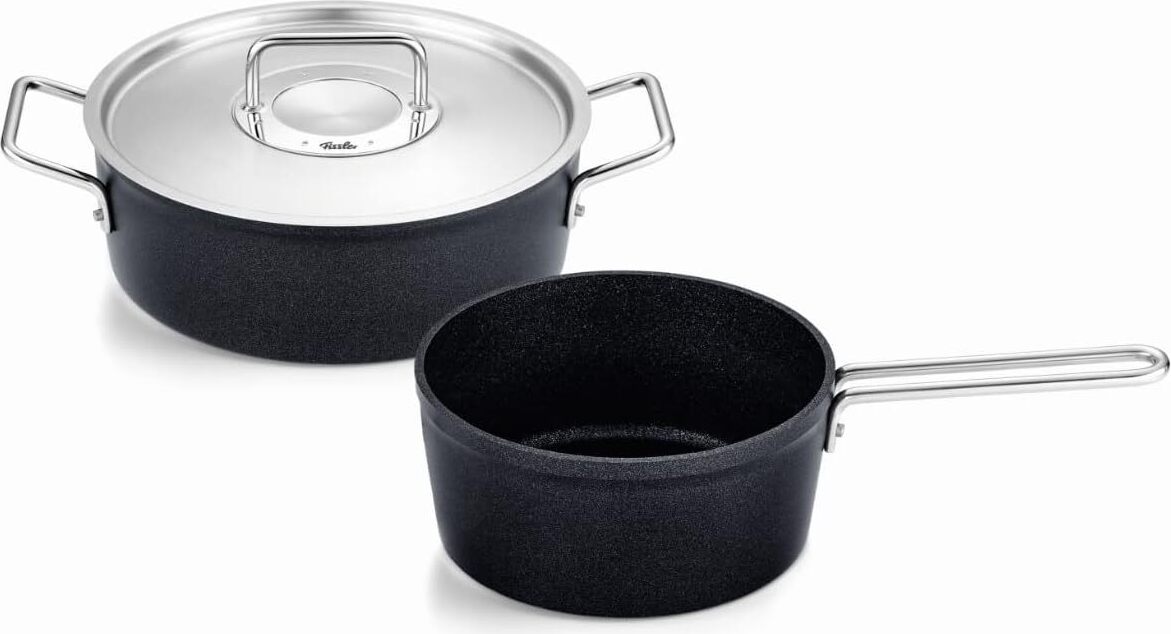 Fissler Adamant Jeu De Sautoir/Casserole En Aluminium À Revêtement Anti-adhésif, 2 Pièces Dont 1 Avec Couvercle Métallique (1 Sautoir, 1 Casserole À Queue), Compatible Induction