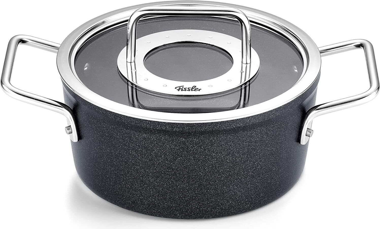 Fissler Adamant Faitout En Aluminium (18 cm, 2 l) Avec Revêtement Antiadhésif, Avec Couvercle En Verre, Compatible Induction, Charbon