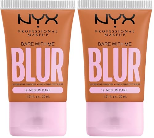 NYX Professional Makeup Fond de Teint Effet Flouté Bare With Me Blur, Couvrance Moyenne, Fini Mat Naturel, Niacinamide, Matcha & Glycérine, Hydratation Jusqu'A 12H, Teinte : Medium Dark (12)