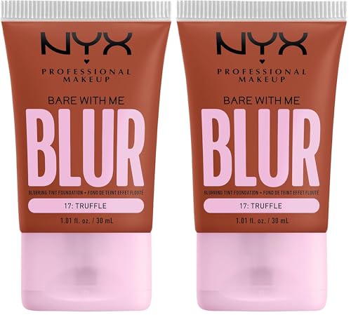 NYX Professional Makeup Fond de Teint Effet Flouté Bare With Me Blur, Couvrance Moyenne, Fini Mat Naturel, Niacinamide, Matcha & Glycérine, Hydratation Jusqu'A 12H, Teinte : Truffle (17) (Lot de 2)