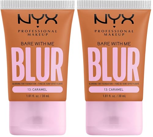 NYX Professional Makeup Fond de Teint Effet Flouté Bare With Me Blur, Couvrance Moyenne, Fini Mat Naturel, Niacinamide, Matcha & Glycérine, Hydratation Jusqu'A 12H, Teinte : Caramel (13) (Lot de 2)