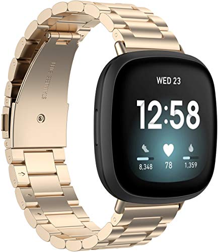 Faliogo Compatible avec Fitbit Versa 3 Bracelet/Fitbit Sense Bracelet, Bracelet de Remplacement Métal en Acier Inoxydable pour Fitbit Versa 3/Sense, Petit Or Rose