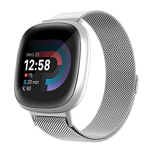 SeNool Bracelet Compatible avec Fitbit Versa 3 / Sense, [Bande de Remplacement] [Usure et Résistant à la Corrosion] Acier Inoxydable Maille Métal Band Compatible avec Fitbit Sense/Versa 3 - Argent