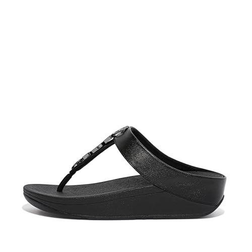 Fitflop FINO Sandales à bout pour femme avec bordure en pierre, noir, 39 EU