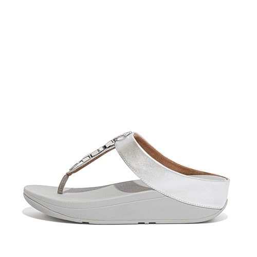 Fitflop FINO Sandales à bout pour femme avec bordure en pierre, argent, 36 EU