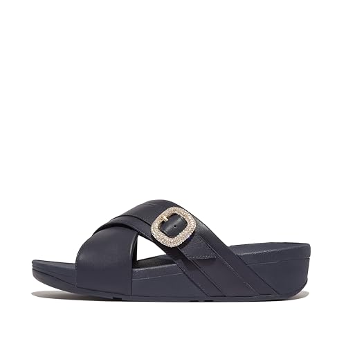 Fitflop Lulu Sandales croisées en cuir avec boucle en cristal pour femme, bleu marine, 36 EU