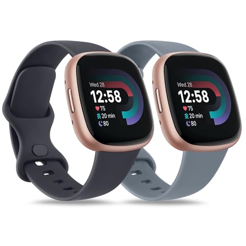 AK 2 Pack Bracelet pour Fitbit Versa 4/Sense 2/Fitibit Versa 3/Sense pour Femmes Hommes,Bracelet de Remplacement Réglable pour Fitbit Versa 4/Sense 2/Versa 3/Sense (Gris Bleu/Bleu Nuit, Large)
