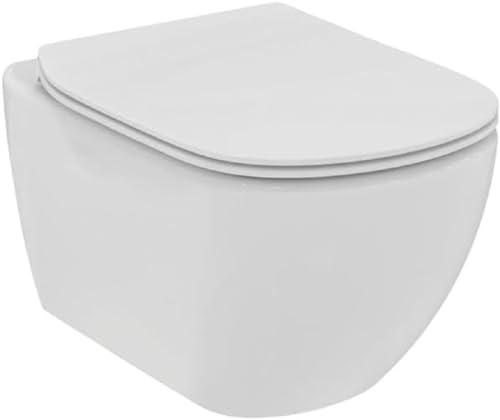 Ideal Standard TIRSO Pack wc suspendu Blanc, Cuvette sans bride, Abattant avec Frein de chute pour une fermeture douce et silencieuse, Résistant et Facile à nettoyer, R034301