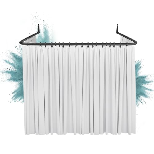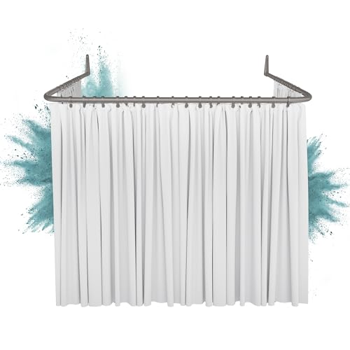 Erica Tringles de Rideau de Douche en U - 85x95x85 cm, Barre de Rideau de Douche Murale sans Fixation au Plafond - Revêtement Plastique sans PVC, Tringle de Douche 100% Inoxydable. Blanc.