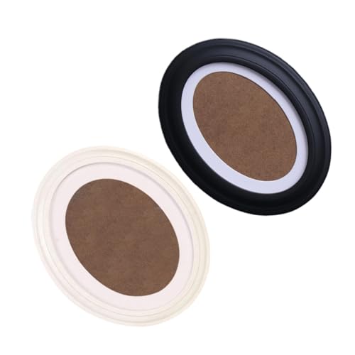 HINTRMENT Lot de 2 Cadres Photo Ovales en Bois 18 Cm Cadre Mural Décoratif Noir et Blanc Fixation Murale sans Percer Clous Inclus Ovale Simple pour Déco Murale Intérieure