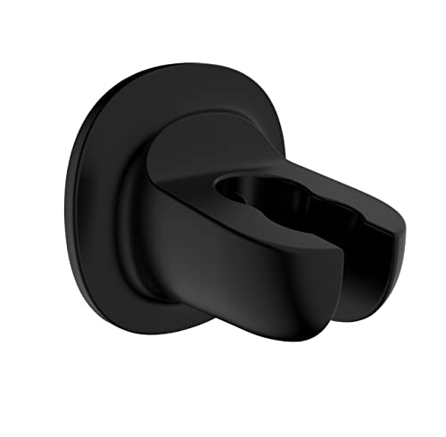WENKO Support pour pomme de douche Libertà, support mural pour douchette à fixation facile sans percer avec tampon adhésif, en plastique solide ABS, amovible sans laisser de trace, diameter 7 cm, noir