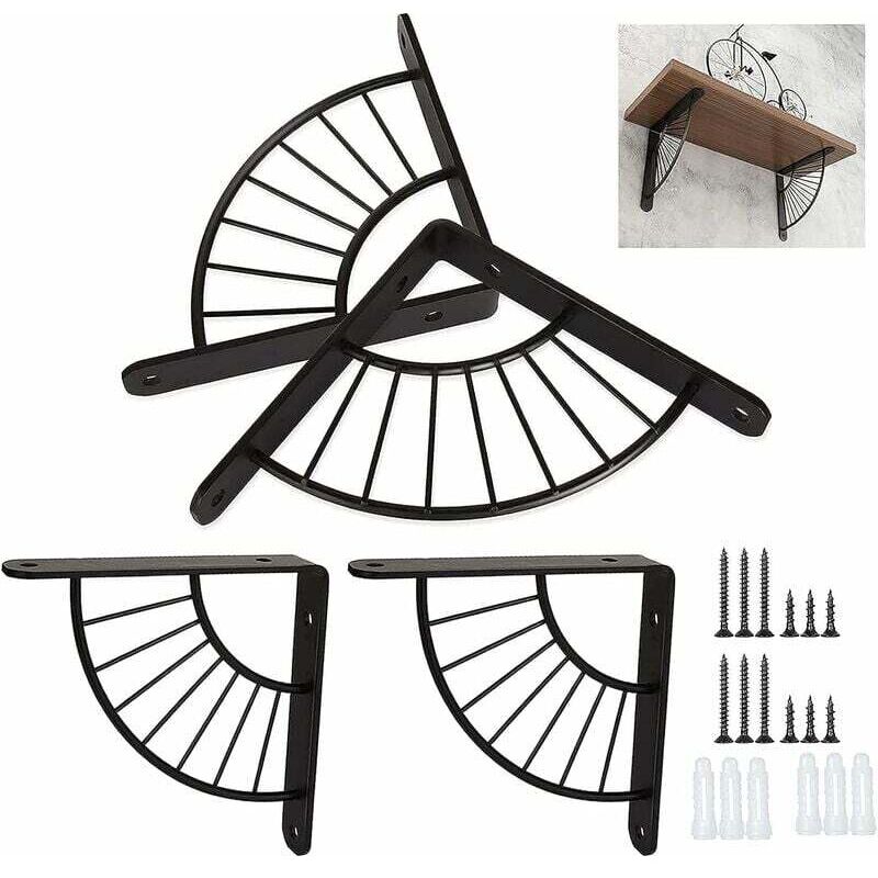 Lntyq 2 Pcs Equerre Etagere Murale Noir, Equerre Charge Lourde, Supports Équerre Étagère de Fixation Etagere Murale Vintage, Supports d'Étagère