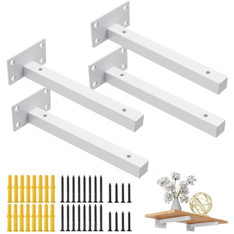 RHG 6pcs Equerre Etagere Murale Blanche Equerre Fixation Etagere Support Étagère Murale Métal Equerre Murale Charge Lourde avec Vis pour Déco Cuisine