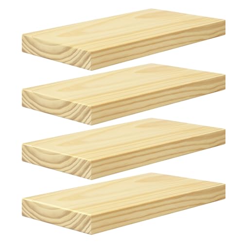 eSituro Étagères Murales Suspendue, Lot de 4, Pin Massif, Étagères Flottantes pour Salon, Cuisine, Tablette Murale en Bois, Décoration pour Chambre à Coucher, Moderne, Fixation Invisible, 40cm