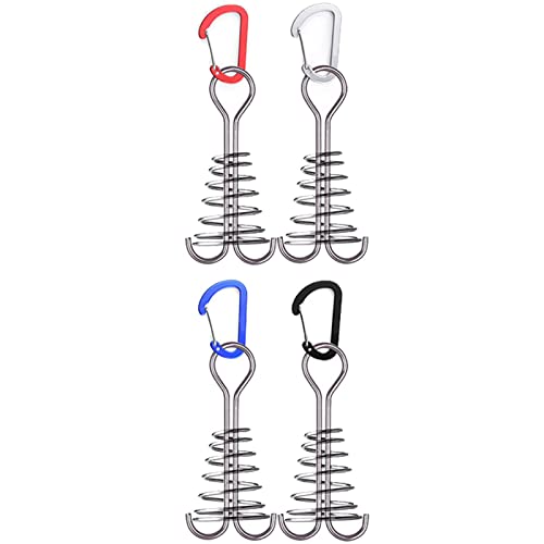 Fixation Tente,4 piquets Tente pour auvent avec Boucle à Ressort | avec Piquet Pont à Boucle à Ressort et mousquetons pour Planche terrasse en Bois Camping Theaceae