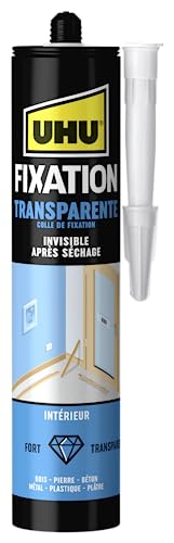 UHU Fixation Express - Colle De Fixation Et De Montage Invisible - Ultra Forte Et Rapide - Tous Matériaux : Bois, Pierre, Métal, Verre, Plastique - Formule Acrylique - Transparent - Cartouche de 310 g