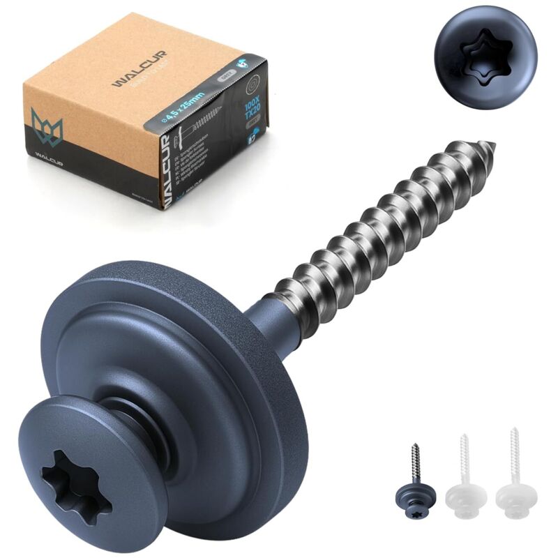 Vis bois penture autoperceuses inox ø 4,5 x 25 mm – étanches avec rondelle caoutchouc – boîte de 100 pièces – fixation toiture/terrasse - WALCUR