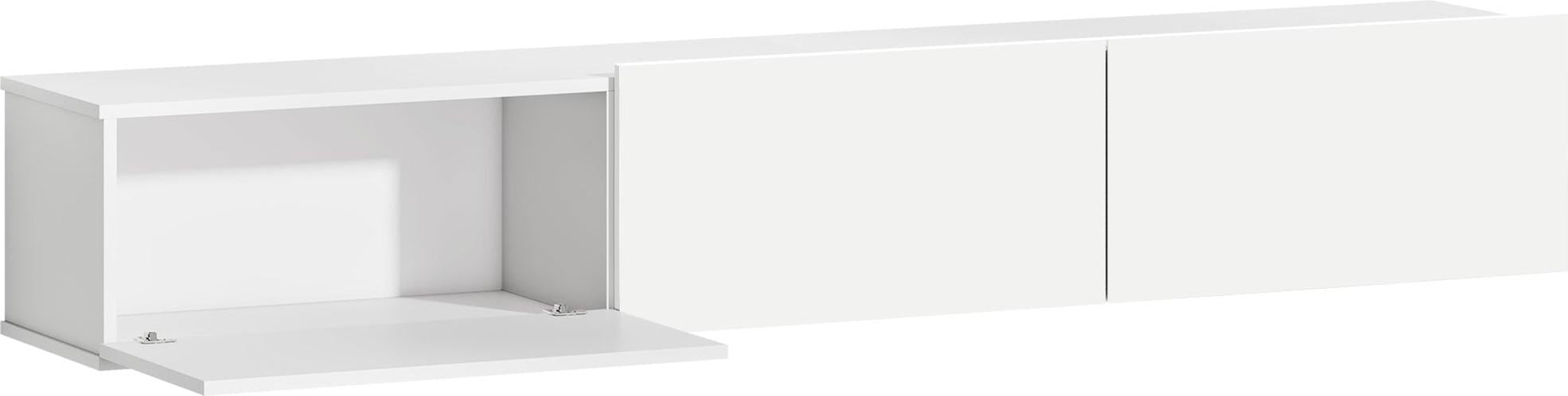 Meuble TV bas/meuble TV - Meuble TV suspendu - Longueur 170 cm - Finition brillante - Éclairage LED - Fixation murale possible - Design moderne - Blanc