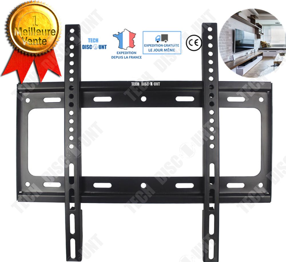 451042 Support Tv Mural Fixe Pour Tele Ecran Plat De 42 À 55 Pouces (106 À 140 Cm) Fixation Et Accroche Facile Sur Tous Types De Mur Jusqu'À 35 Kg - Noir