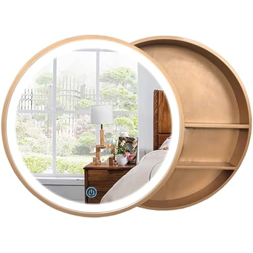 GDHKDDFL Miroir de Salle de Bain à LED, Armoire de Salle Bain à LED avec Porte Ronde et Fixation Murale, Armoire Miroir en Bois éclairage, Rangement, Noir, 50 cm(50cm)