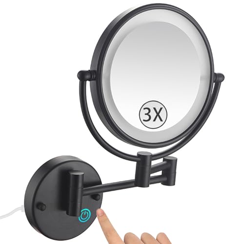 Zysfadc Miroir De Maquillage Éclairé À Fixation Murale, Miroir Grossissant LED Double Face De 8", Miroir Cosmétique Extensible À Interrupteur À Poussoir,Noir,3X