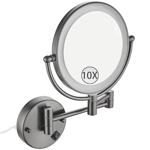 Zysfadc Miroir De Maquillage Éclairé À Fixation Murale, Miroir Grossissant LED Double Face De 8", Miroir Cosmétique Extensible À Interrupteur À Poussoir,Gris,10X