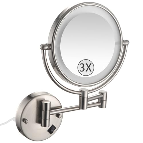 Zysfadc Miroir De Maquillage Éclairé À Fixation Murale, Miroir Grossissant LED Double Face De 8", Miroir Cosmétique Extensible À Interrupteur À Poussoir,Brushed Nickel,3X