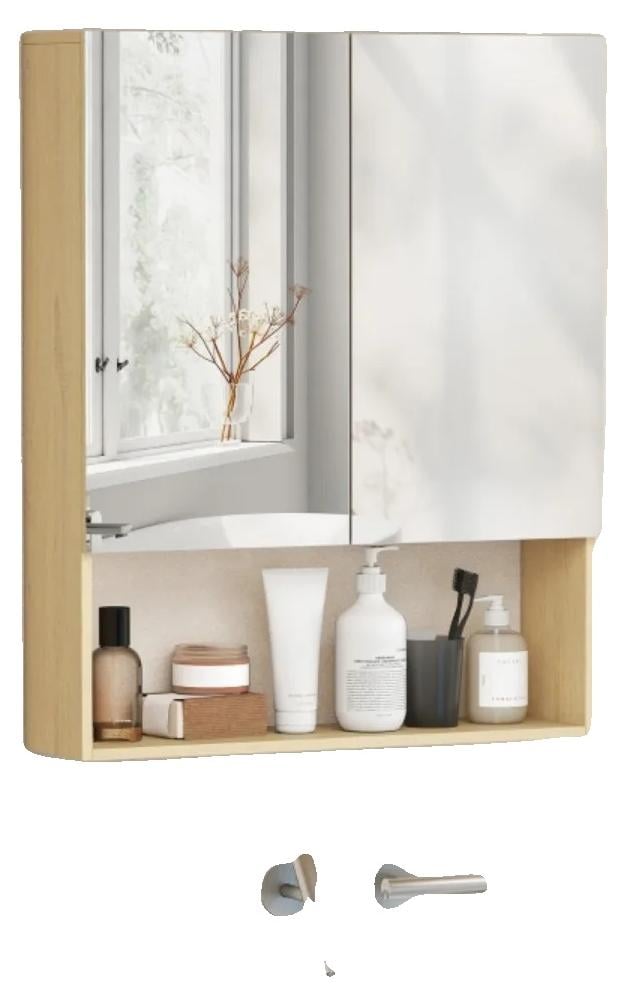 Armoire de salle de bain, MDF et aggloméré, fixation murale, double porte miroir, étagère réglable, charnières à fermeture douce