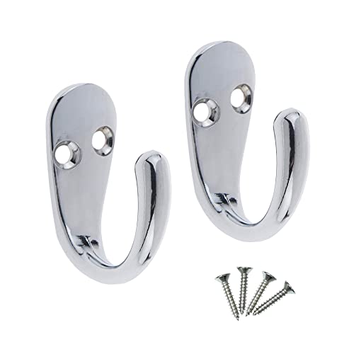 Select Hardware Lot de 2 Crochets Simples pour Peignoirs avec vis, Finition chromée, Fixation Murale et Porte pour Salle de Bain, Chambre à Coucher, Salon, Couloir