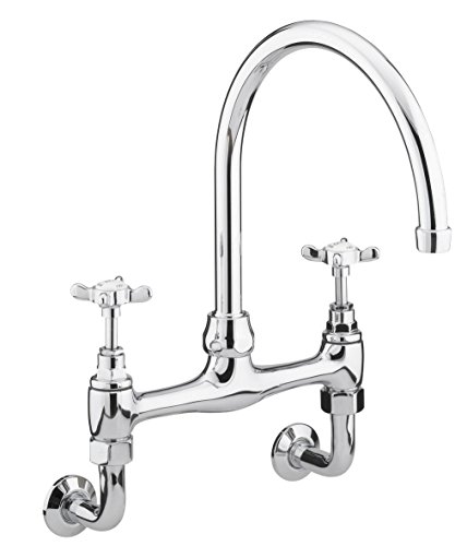 DuraSteel Robinet d'évier de cuisine à fixation murale 10,2 cm avec bec verseur en col de cygne de 8,9 cm – Poignées à double bouton – Construction en laiton et chrome poli