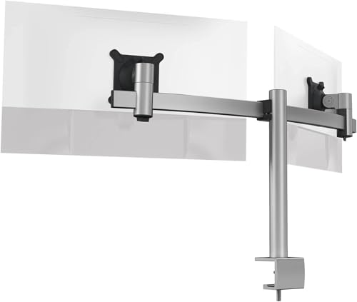 Durable 508523 Support Double Écran Pro pour Deux Moniteurs de 21 à 27 Pouces, Compatible Vesa, Inclinable et Ajustable ,Fixation Pince, Coloris Argent