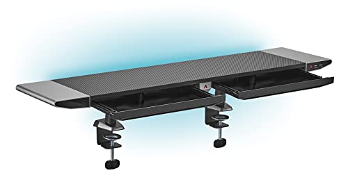 mywall HT44L Support de Moniteur avec éclairage RVB – Fixation à Pince, rehausseur d'écran, 2 tiroirs, 2 Ports USB, rehausseur d'écran, pour Bureau