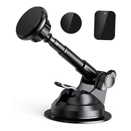 RORPOIR Support de Téléphone Portable à Ventouse Magnétique pour Voiture, Rallonge Télescopique, Fixation Tableau de Bord et Pare-Brise, Couleur Noir, Usage Voiture et Bureau